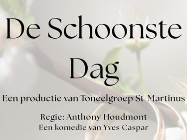 De productie van dit jaar, De Schoonste dag, wordt een knotsgekke komedie waar het publiek zal schaterlachen om de gekke situaties. Laat u boeien door deze komedie die het talent van onze toegewijde theatergroep laat zien.